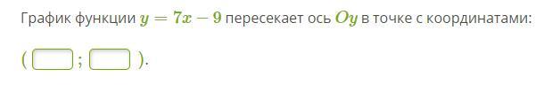 График функции y=7x−9 пересекает ось Oy в точке с координатами: