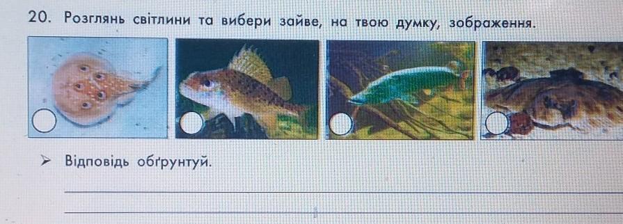 Мне кажется 2 лишнее. Потому-что остальные плавают по дну, а эта рыба нет
