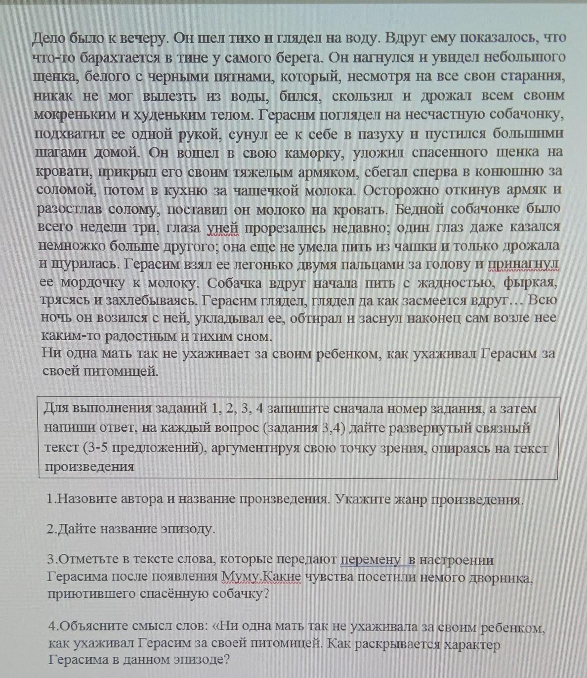 4),,Ни одна мать так не ухаживал за своим ребёнком,как ухаживал Герасим за своей петомицей" то есть Герасим очень хорошо ухаживал за своей петомицей. Он её любил.