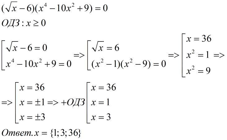 решить уравнение (√x-6)(x^4-10x^2+9)