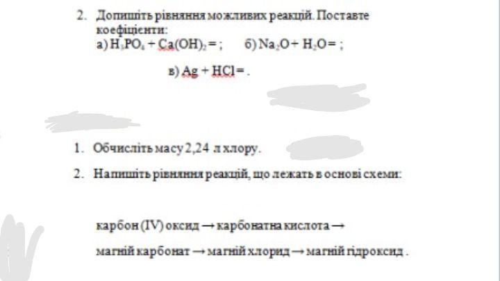 1. m(Cl2) = V(Cl2)/Vm*M(Cl2) = 2,24 л/22,4 л/моль*71 г/моль = 7,1 г
