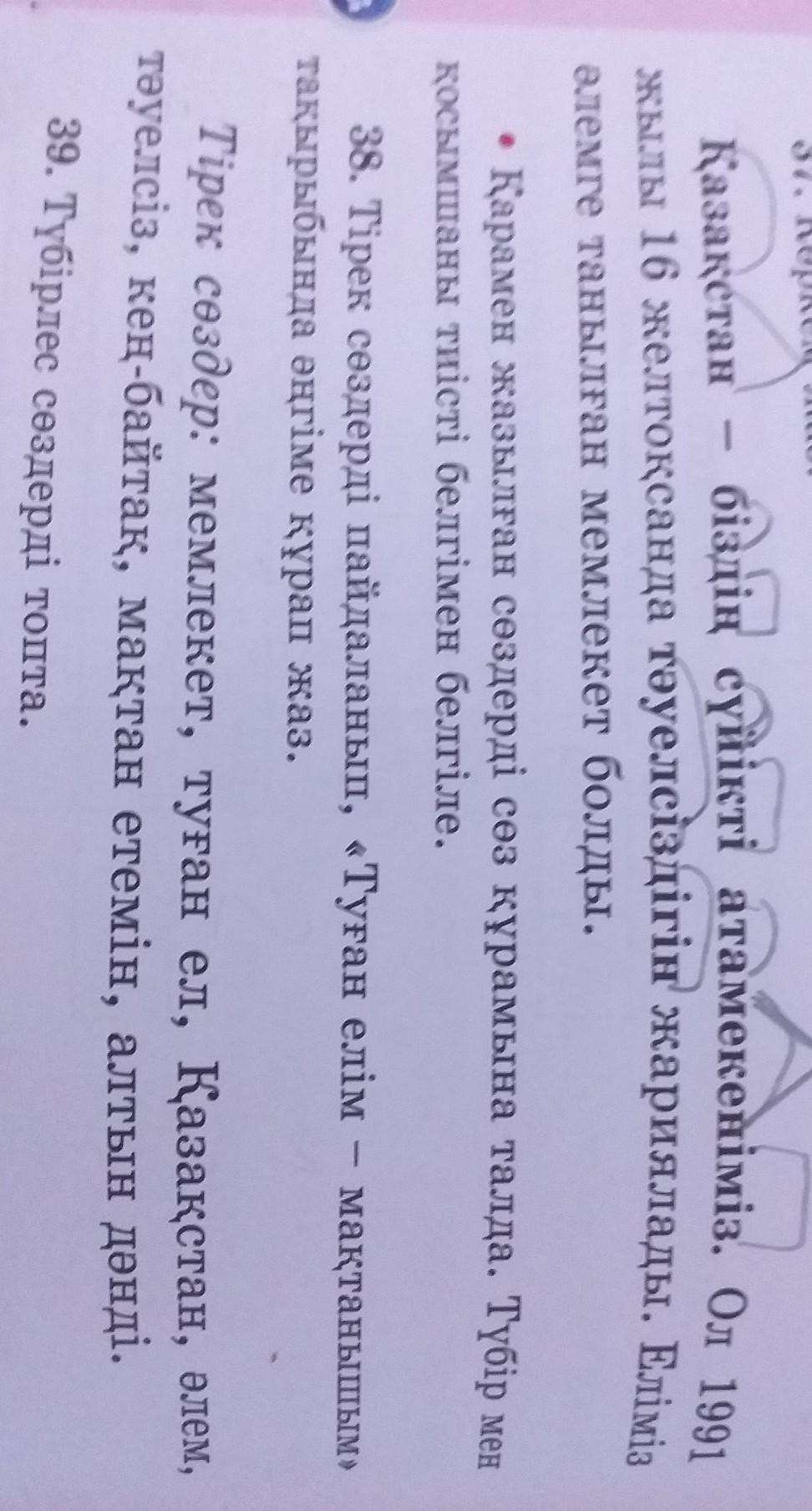 қарамен жазылған сөздерді сөз құрамына талда.Түбір мен қосымшаны тиісті белгімен белгіле.