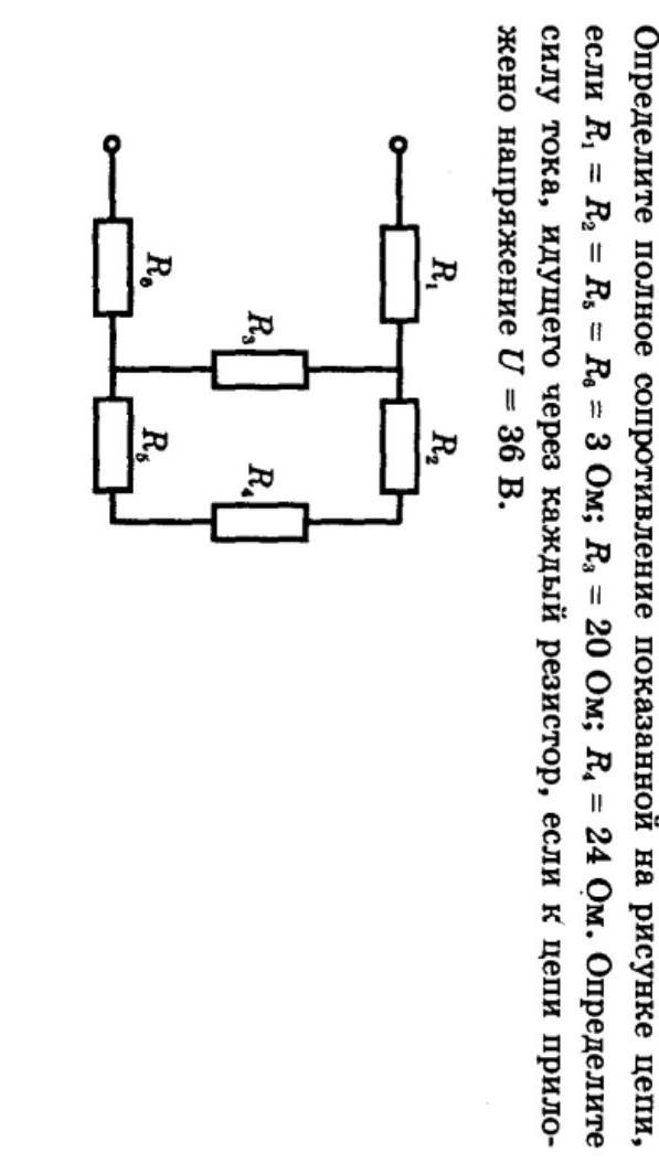 Необходимо определить типы соединений резисторов в цепи. R4, R5, R6 соединены последовательно, поэтому R456=R4+R5+R6=30 Ом. R3 подключён параллельно к R456, поэтому R3456 = R3*R456/R3+R456=12 Ом. R1 и R2 подключены к R3456 последовательно, поэтому полное сопротивление цепи R=R1+R2+R3456=18 Ом.