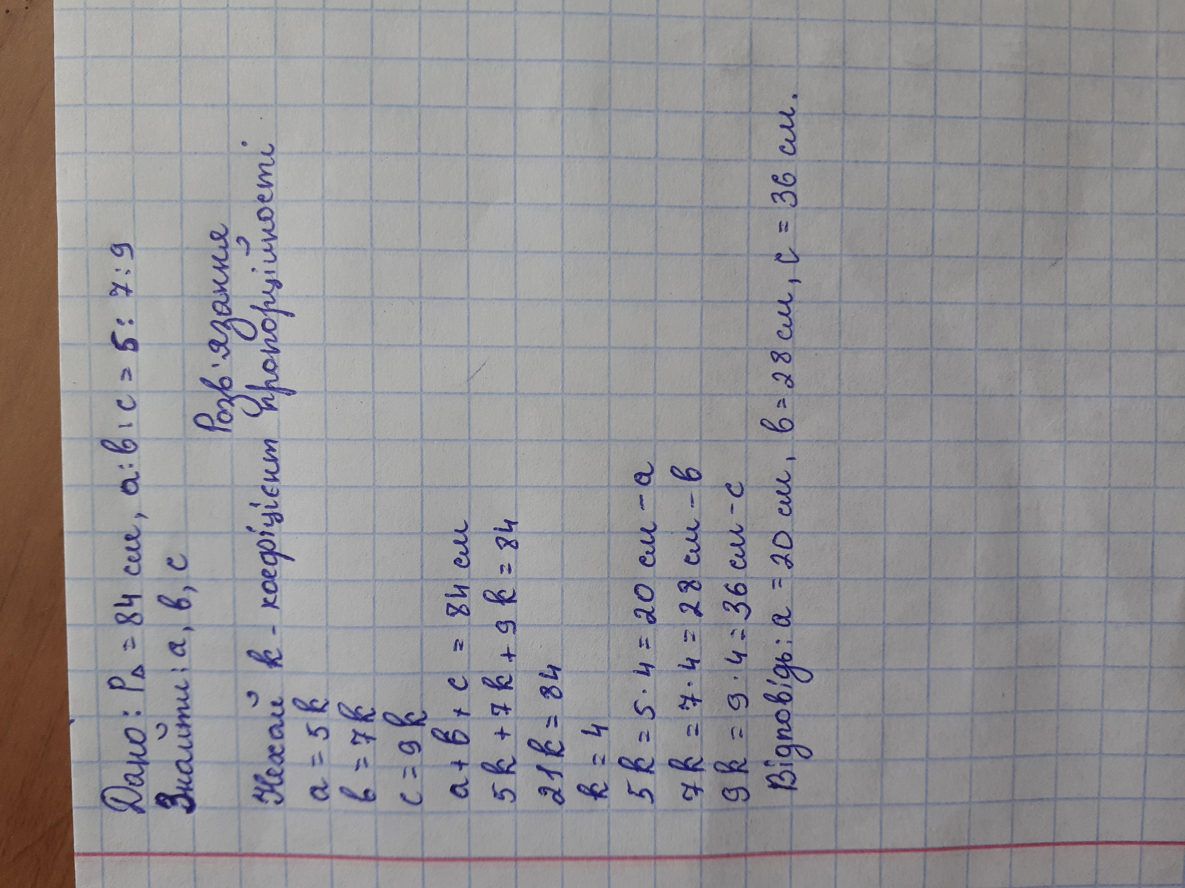 Длины сторон треугольника относятся как 5 : 7 : 9. Найти эти длины, если периметр треугольника равен 84 см.
