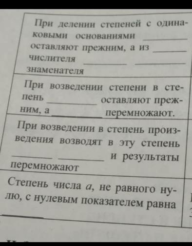 При делении степеней с одинаковыми основаниями основание оставляют прежним а из показателя числителя вычитают показатель знаменателя