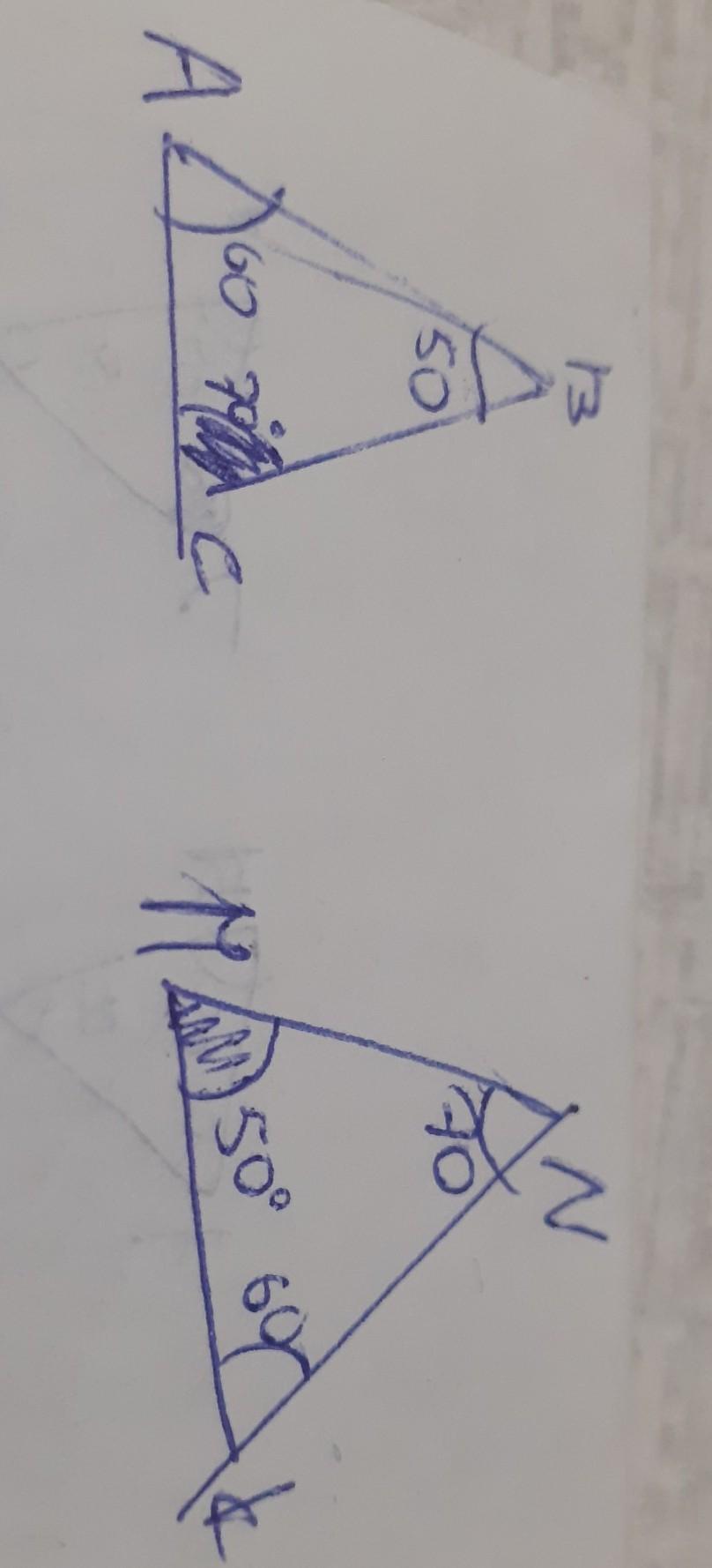 1)Для начала возьмём треугольник АВС. Для того, чтобы найти С, нам нужно к 50 добавить 60, затем сумму отнять от 180 (сумма всех углов=180°) :