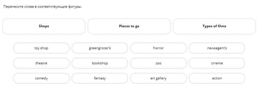 shops: toy shop, greengrocer`s, newsagent`s, bookshop