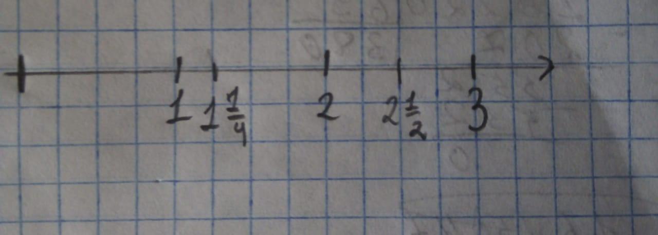 Где на координатной прямой находится точка 2 1/2 и точка 1 1/4