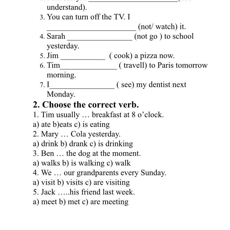 1 Tim usually eats breakfast at 8 o'clock. b)