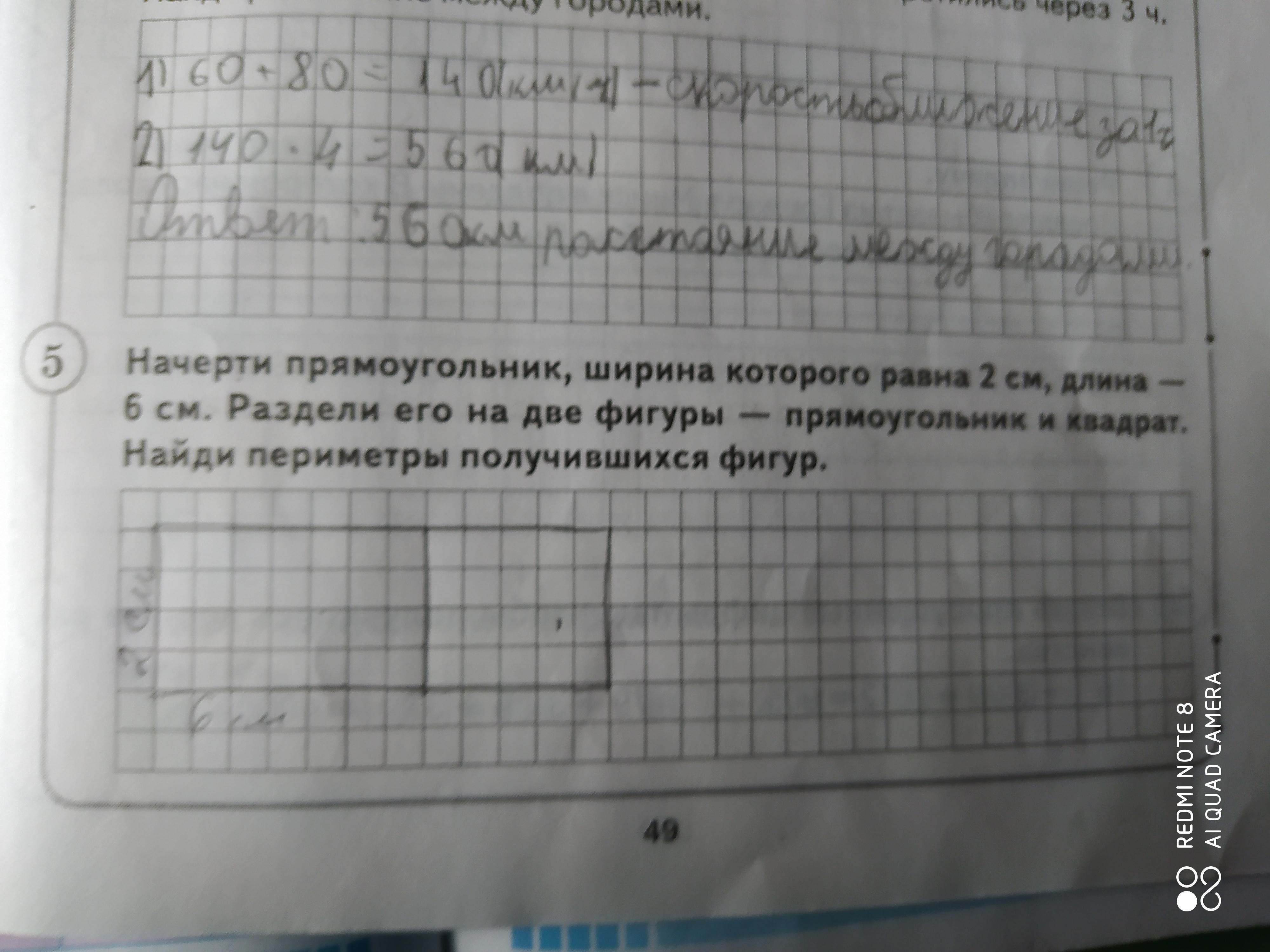 Раздели прямоугольник на квадрат 2 на 2 и на прямоугольник 4 на 2