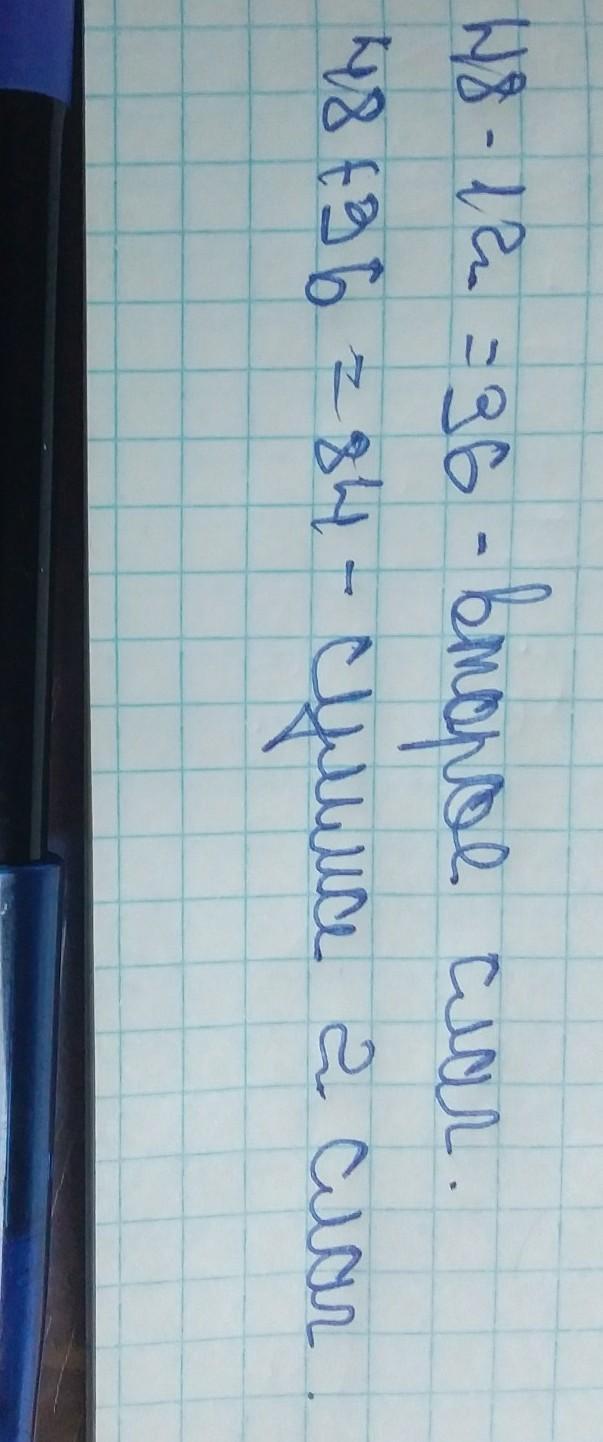 вычислите сумму двух слагаемы если известно что первое слагаемое 48 а второе на 12 меньше первого