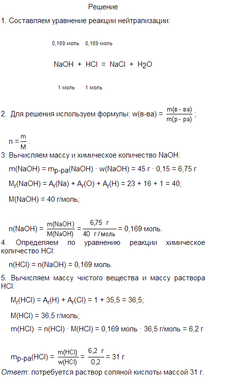 какая масса 20% раствора HCL потребуется для нейтрализации 45г 15% раствора NaOH?
