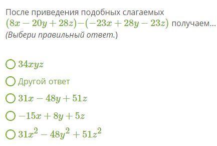 (8x-20y+28z)-(-23x+28y-23z)=8x-20y+28z+23x-28y+23z=31x-48y+51z