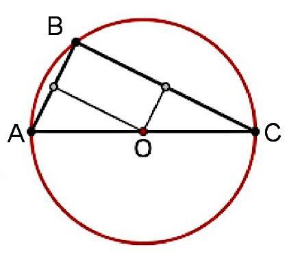 Центром описанной около прямоугольного треугольника окружности является середина гипотенузы. Если нужно найти неизвестный катет, то он находится по теор. Пифагора ВС= .