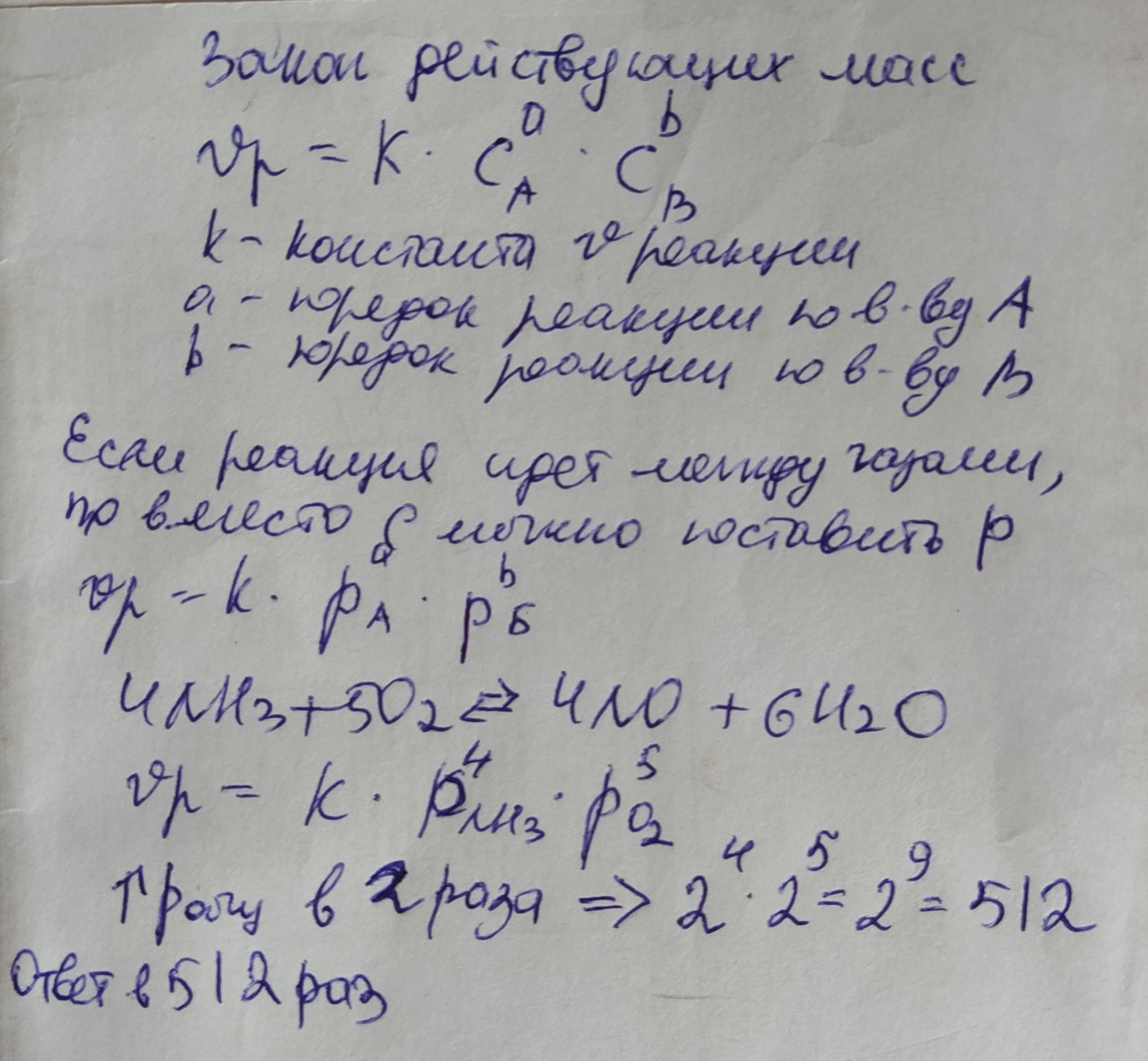 ПОМОГИТЕ!! Во сколько раз увеличится скорость реакции 4NH3 +5O2 4NO + 6H2O при увеличении давления в 2 раза?
