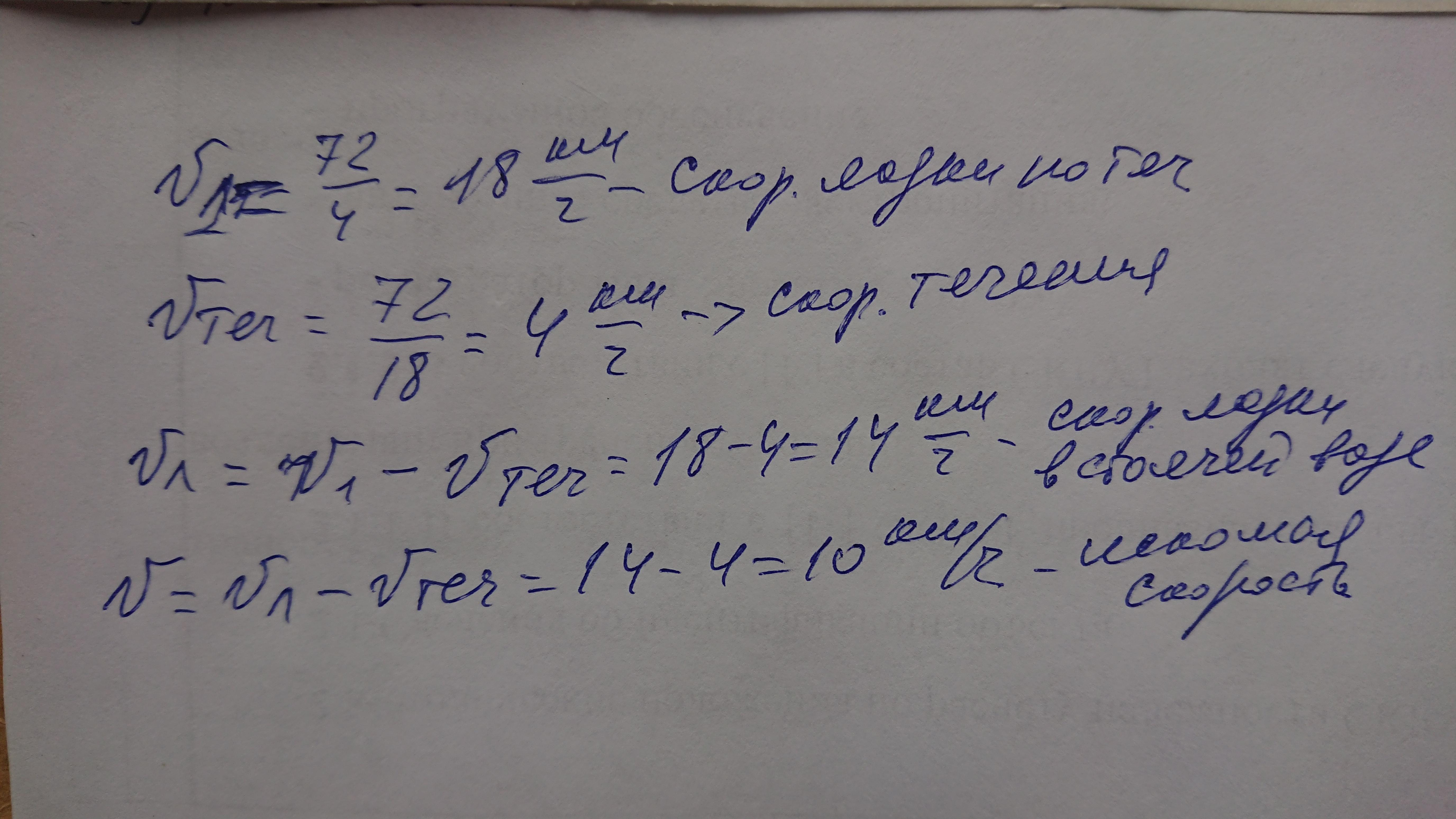 Двигаясь по течению реки расстояние в 72 км моторная лодка проходит за 4 ч,а плот за 18ч. Найди скорость моторной лодки при движении против течения реки