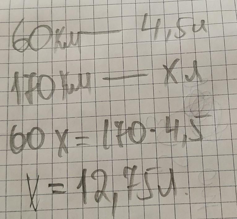 Микроавтобус на 60 км пути затратил 4,5 л бензина. Сколько литров бензина потребуется ему, чтобы проехать 170 км?