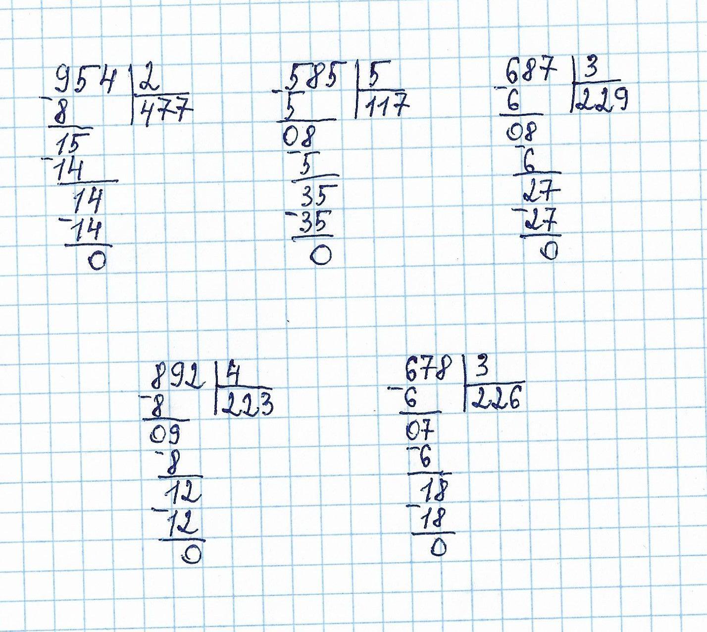 Как разделить в столбик 954÷2 585÷5 687÷3 892÷4 678÷3