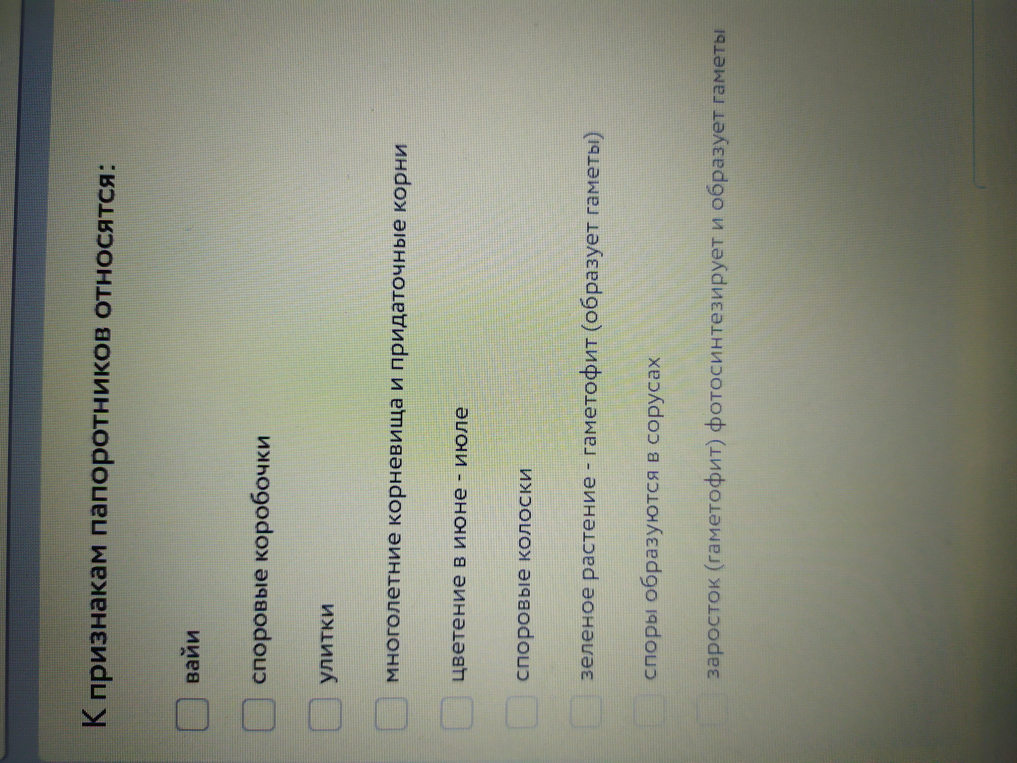 - Папоротник размножается спорами, делением корневища, отростками и боковыми почками, а не семенами. (нет цветения) ;