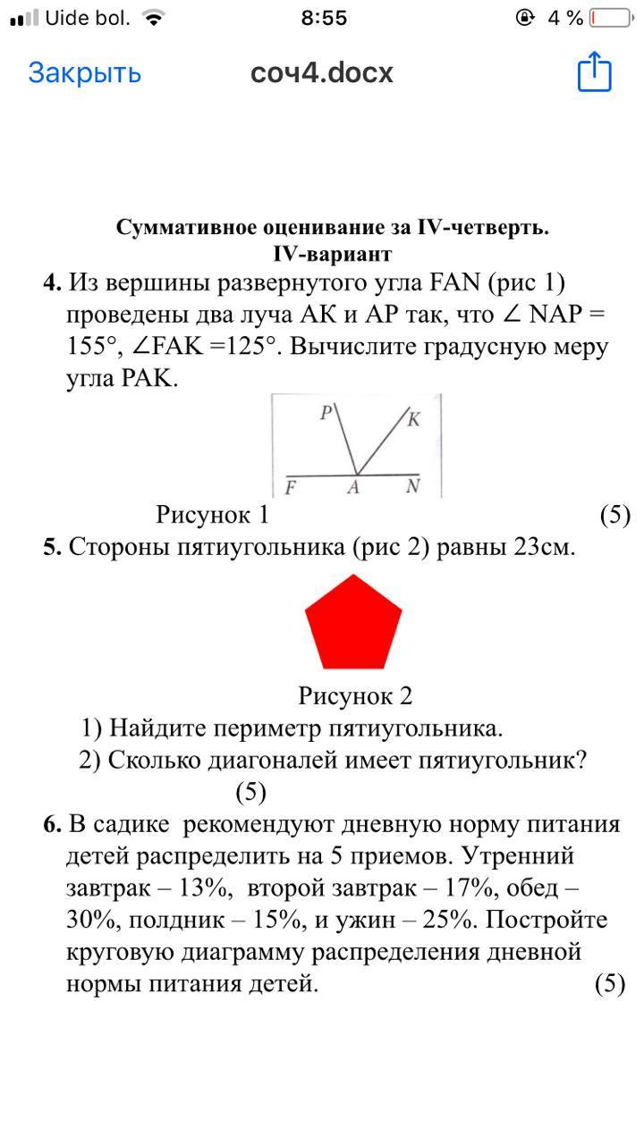 4 (которое 1) Скорее всего надо ∠NAP-∠FAK =155°-125°=30°