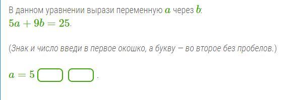 5а=25-9в; а=(25-9в)/5=25/5 - 9в/5