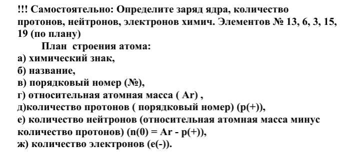 Опишите химические элементы № 13, 6, 3, 15 по плану