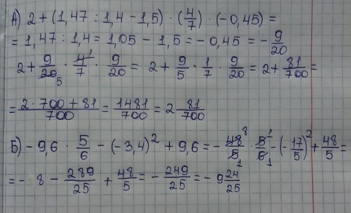 А) 2+(1,47:1,4-1,5)∙(-4/7)∙(-0,45)