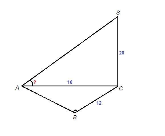Дан прямоугольный треугольник ABC с гипотенузой AC=16 см и катетом BC=12 см.Отрезок SC=20 см,перпендикуляр к плоскости ABC.