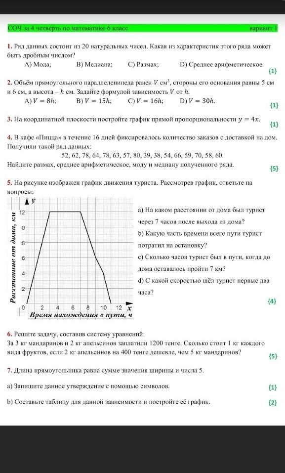 за 3 кг мандарина и 2 кг апельсина заплатили 1200 тг сколько стоит 1 кг каждого фрукта.....