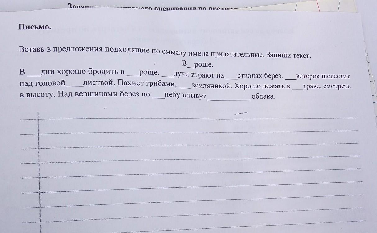 В знойные дни хорошо бродить в берёзовой роще. Яркие лучи играют на красивых стволах берёз. Лёгкий ветерок шелестит над головой яркой,зелёной листвою. Хорошо лежать в мягкой траве ,смотреть в высоту. Над вершинами берёз по голубому небу плывут пушистые облака