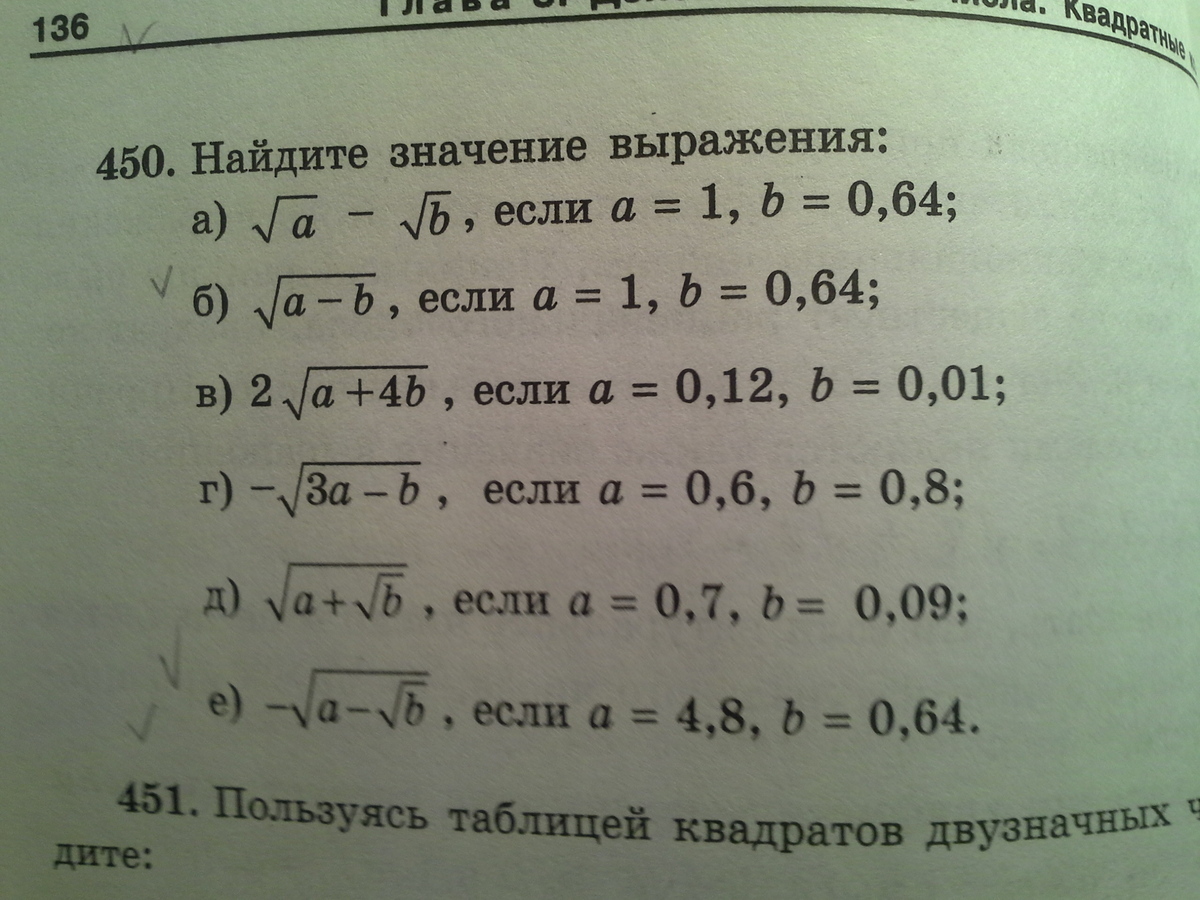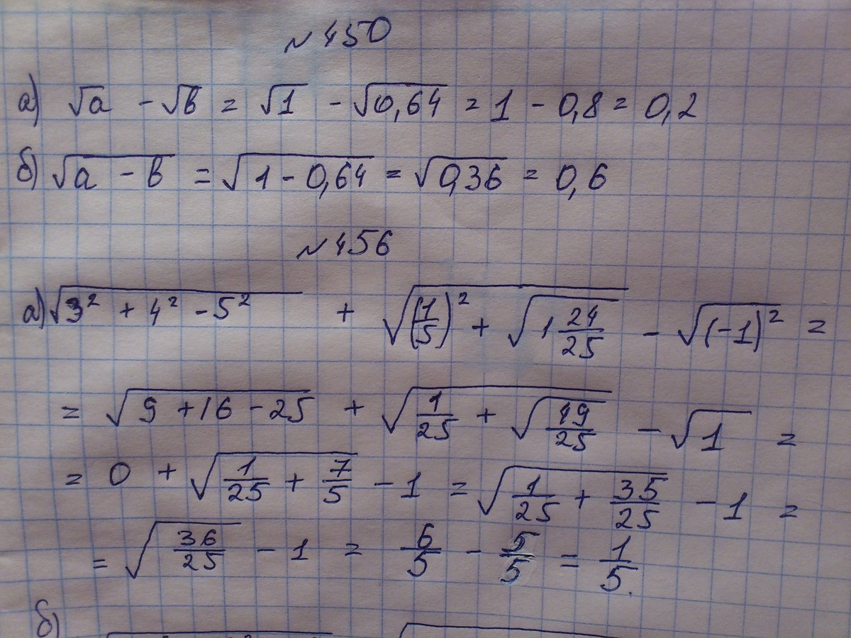 450 а) 1 под корнем- о,64 под корнем= 1-0,8=0,2