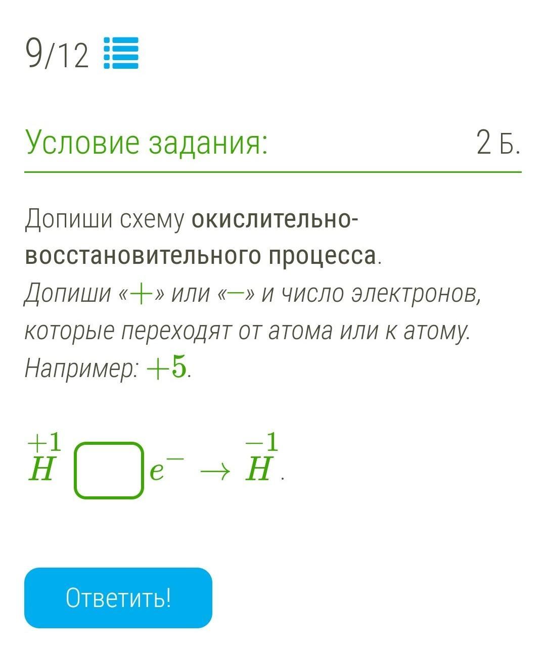 Допиши «+» или «–» и число электронов, которые переходят от атома или к атому. Например: +5.