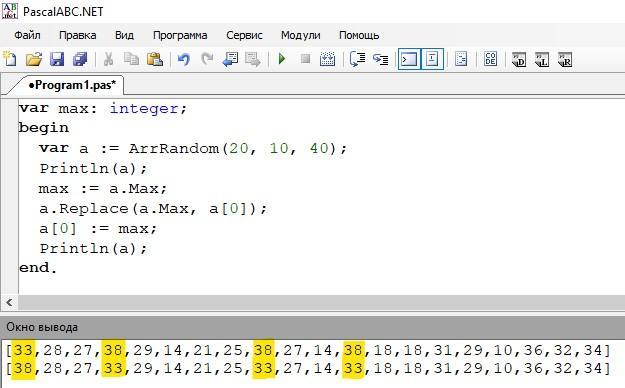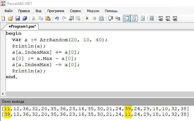 Задача. Задан массив, его характеристики заданы отдельно. Необходимо найти максимальное или минимальное значение элементов массива и сделать перестановку.