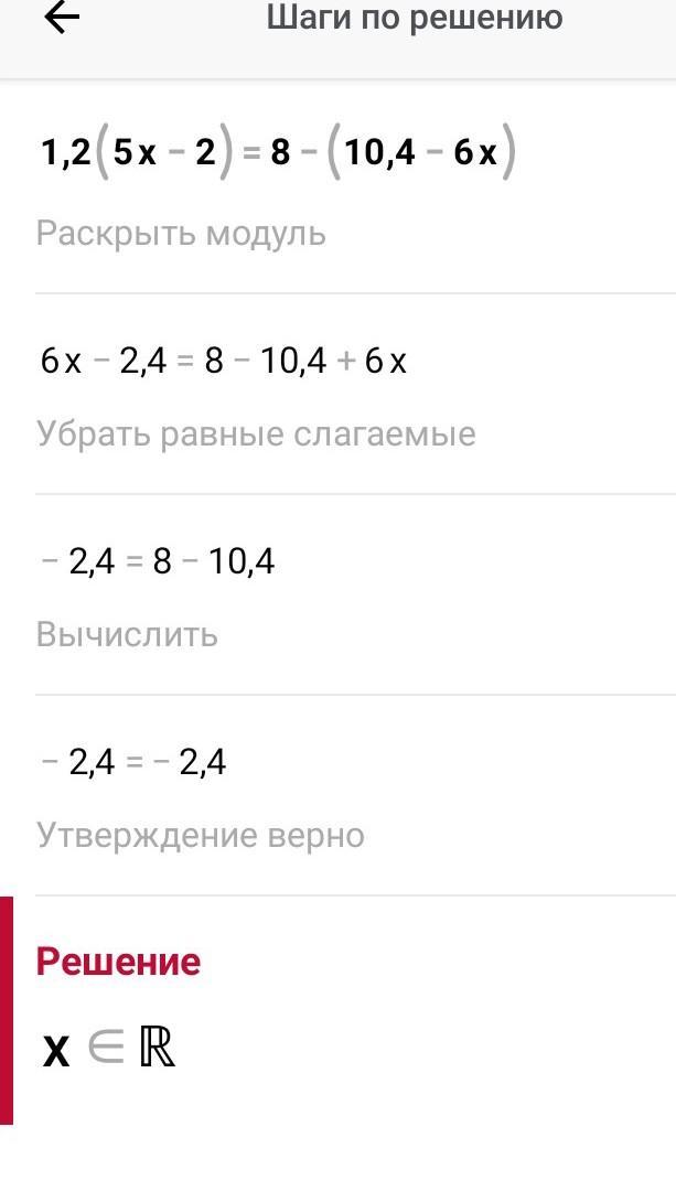 5. Рівняння 1.2(5x-2)=8-(10.4-6x)