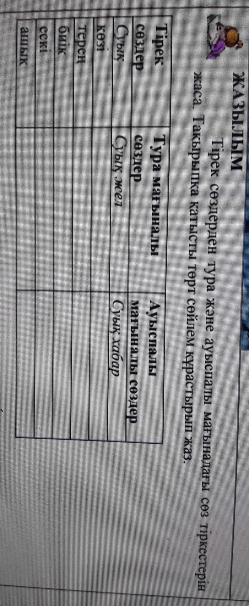 Тірек сөздерден тура және ауыспалы мағынадағы сөз тіркестерін