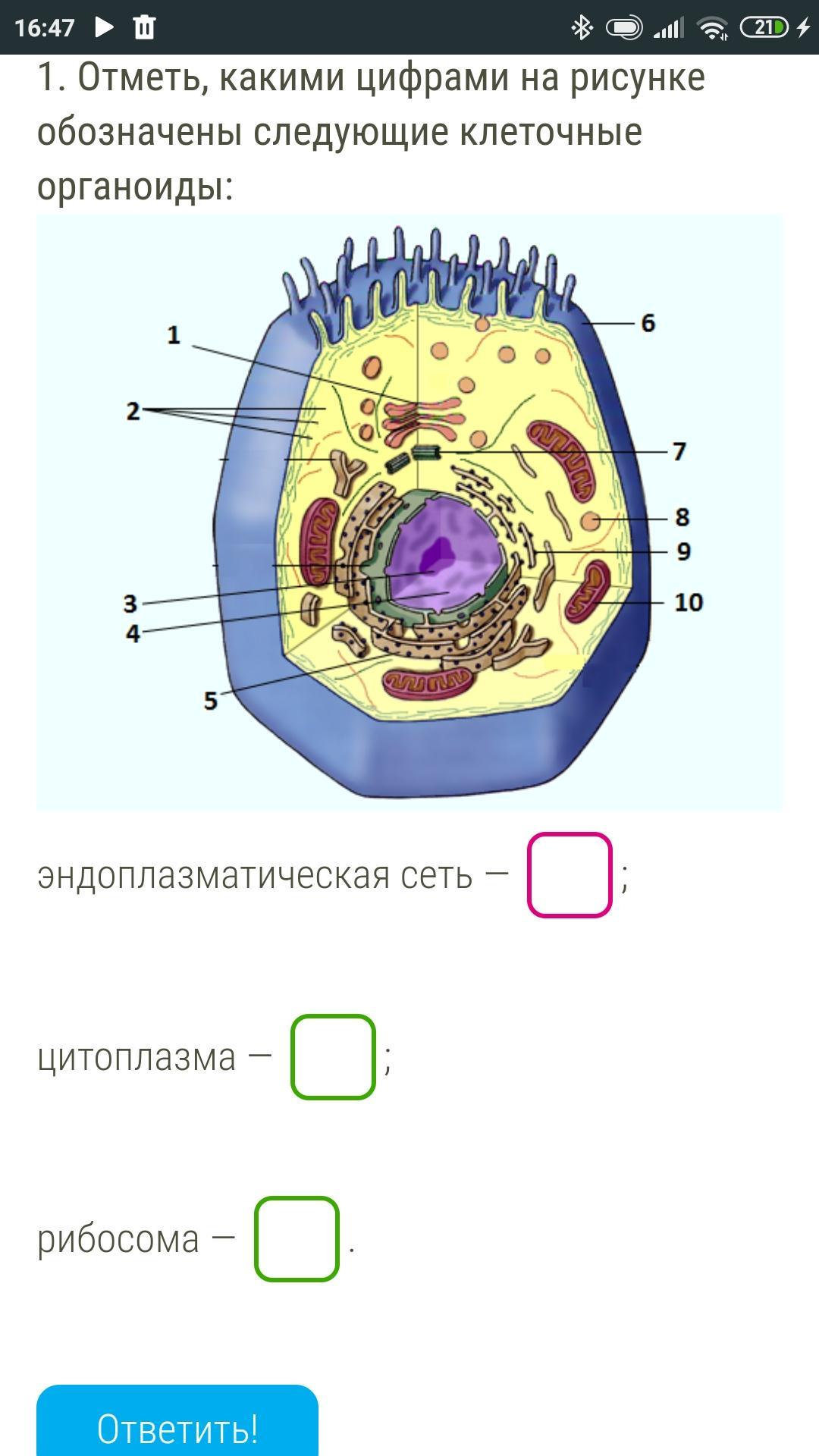1) ендоплазма 6, цитоплазма 3, рибосоми 7