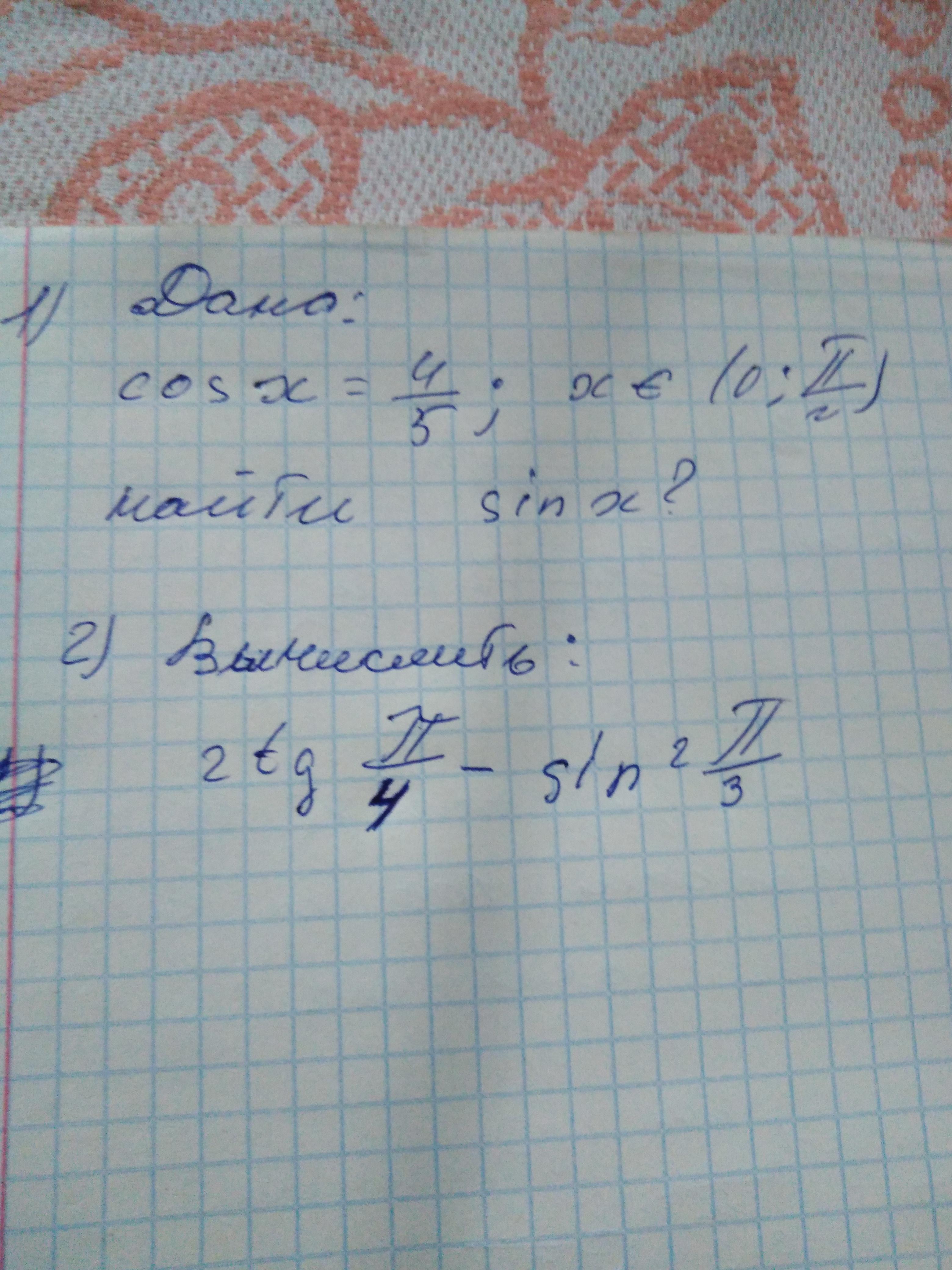2) 2tg (π/4)-sin²(π/3)=2*1-(sin(π/3))²=2-(√3/2)²=2-3/2=2-1.5=0.5