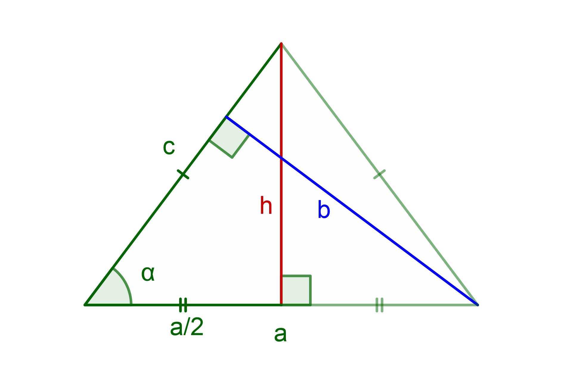 Проведемо висоту h до основи a. Виразимо h через тангенс кута α: