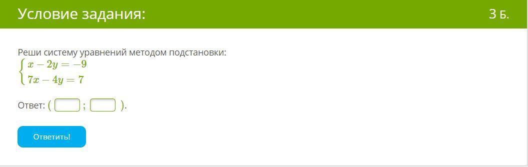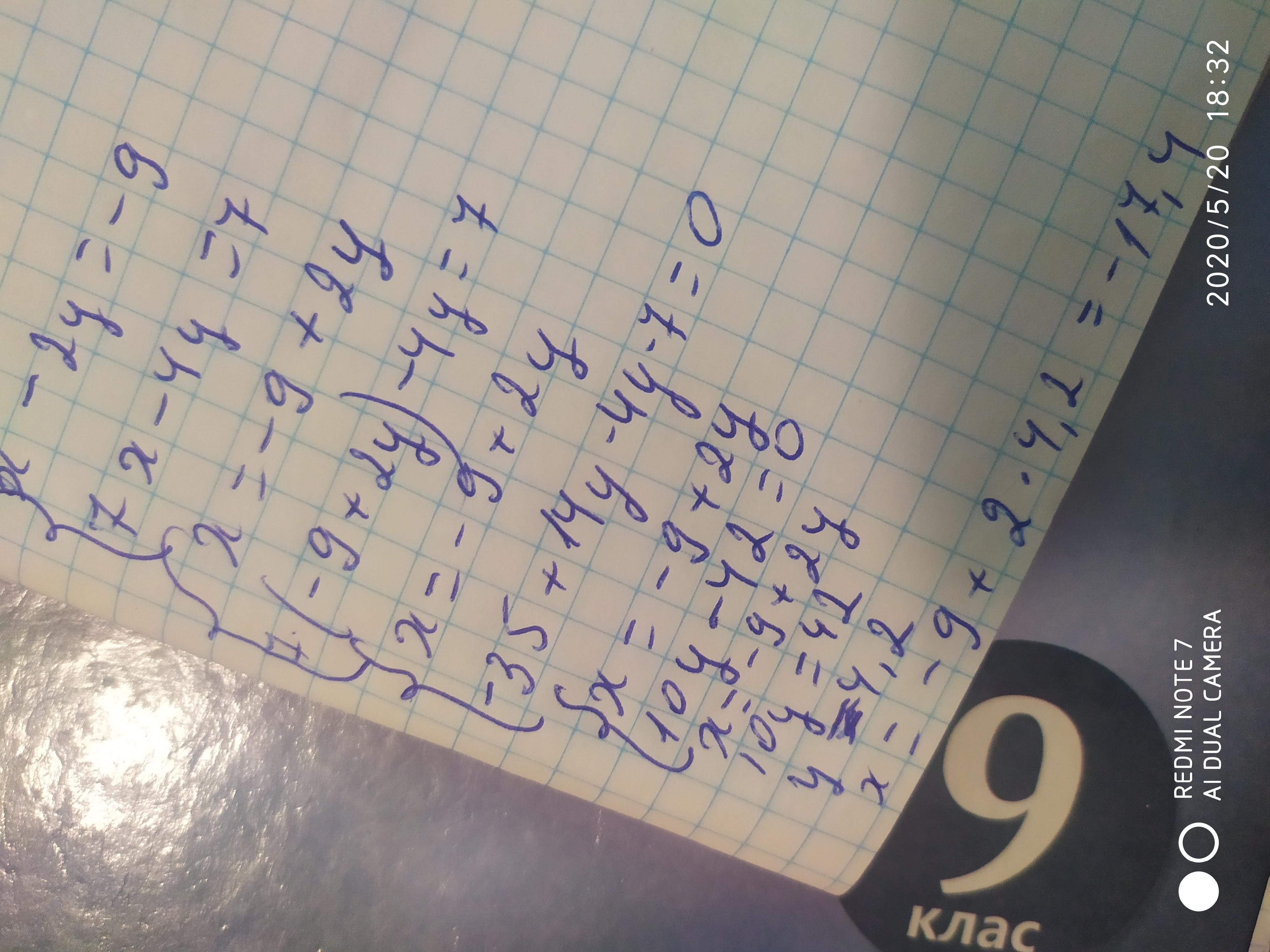 Выразим x из первого уравнения и подставим это значение во второе уравнение.