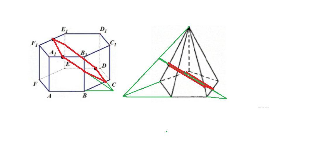 В призмах надо использовать свойство - в параллельных плоскостях линии сечения параллельны.