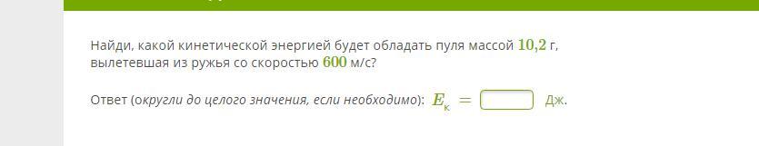 Найди, какой кинетической энергией будет обладать пуля массой 10,2 г,