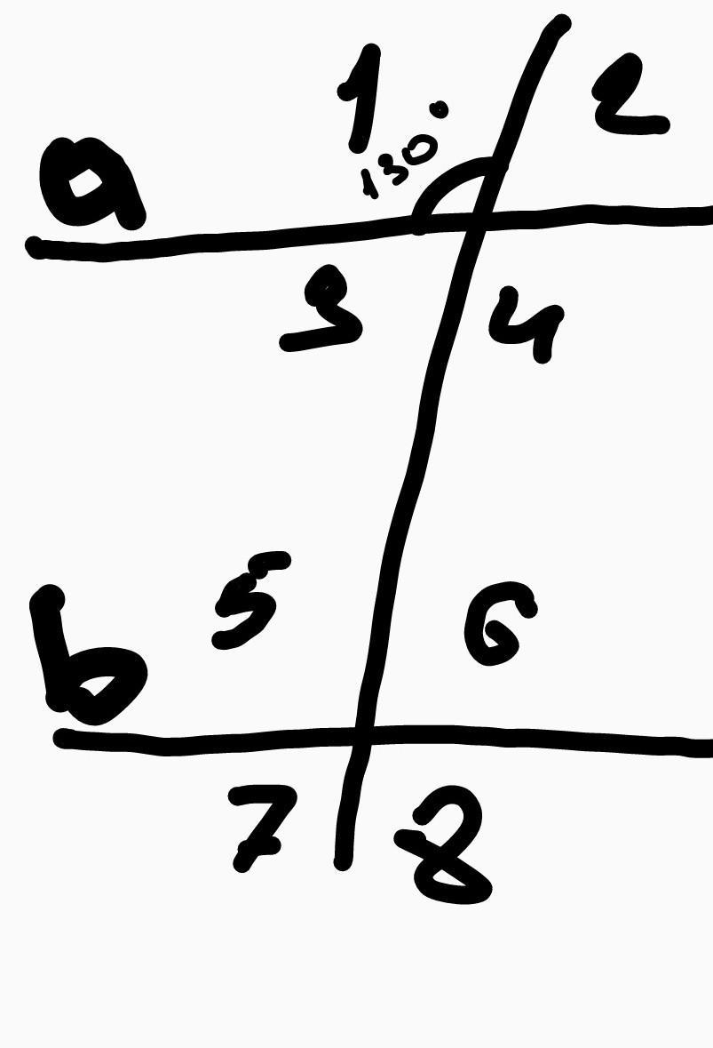 1=4=5=8=130°, 2=3=6=7=50°