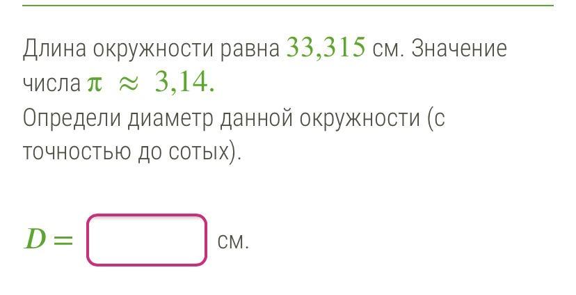 D=2r=33,315:3,14:2*2≈10,61 см.