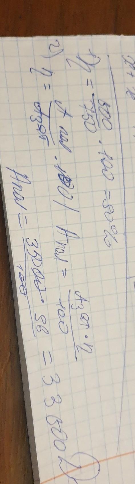 1) КПД= Aпол/Асов * 100% 2)та же формула КПД, из неё находишь Aпол, Апол = mgh, откуда m=Апол/gh
