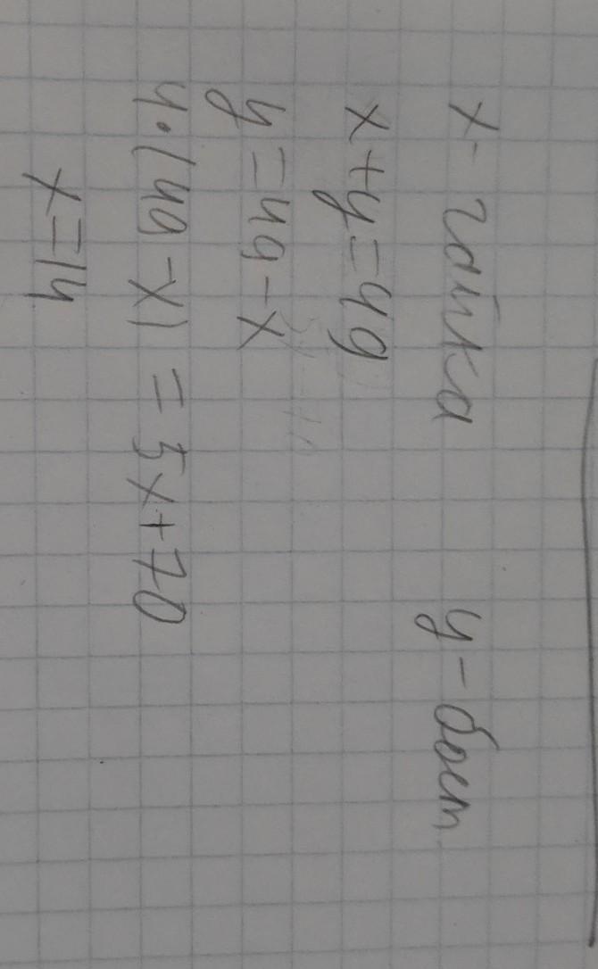 масса болта с гайкой равна 49г. а масса четырёх болтов на 70г больше массы пяти гаек. чемы равна масса болта?Со схемой
