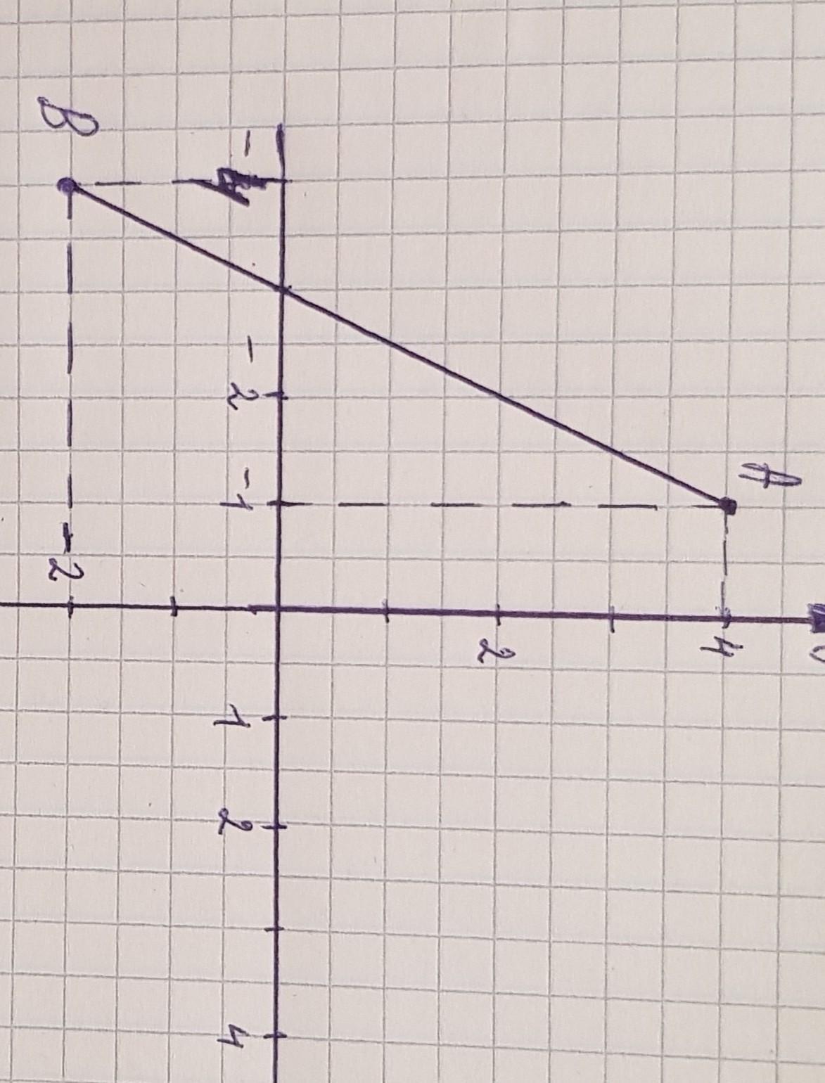 2) на оси абсцисс находим (-4); на оси ординат находим (-2) соединяем найденные значения пунктирной линием. на пересечении линии ставим точку В.