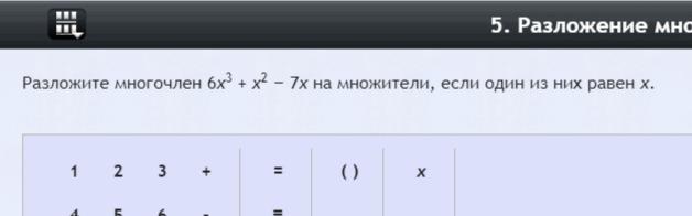 Сначала выносим х за скобку. В скобках остаётся квадратное выражение х(6х*х+х-7), которое мы потом раскладываем как при решении квадратного уравнения х*(6*х*х +7х-6х-7)=х*(х*(6х+7)-(6х+7))=х*(6х+7)*(х-1)