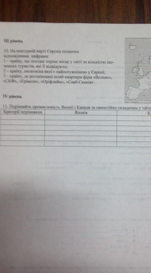 11. Порівняйте промисловість Японії і Канади за самостійно складеним у таблиці планом.