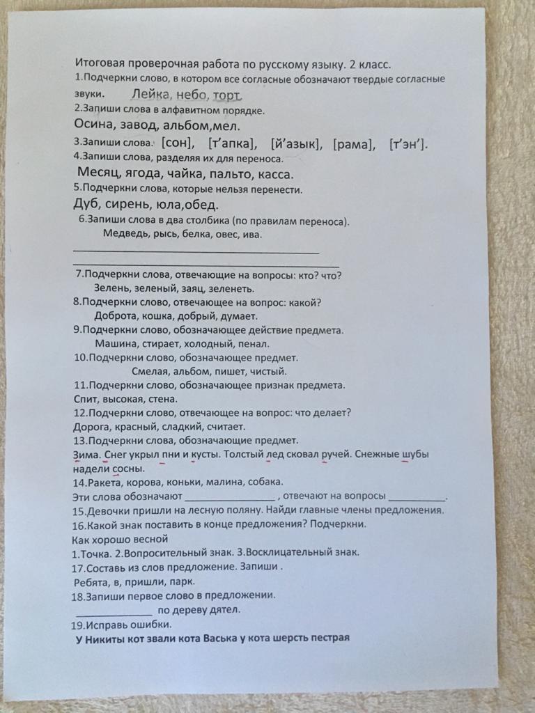 19)У Никиты кот. Звали кота Васька. У кота шерсть пёстрая.