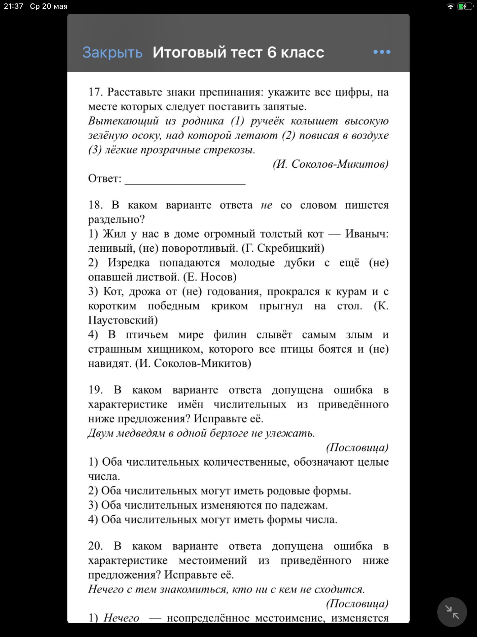17. Вытекающий из родника ручеёк колышет высокую зелёную осоку, над которой летают,(2) повисая в воздухе,(3) легкие прозрачные стрекозы.